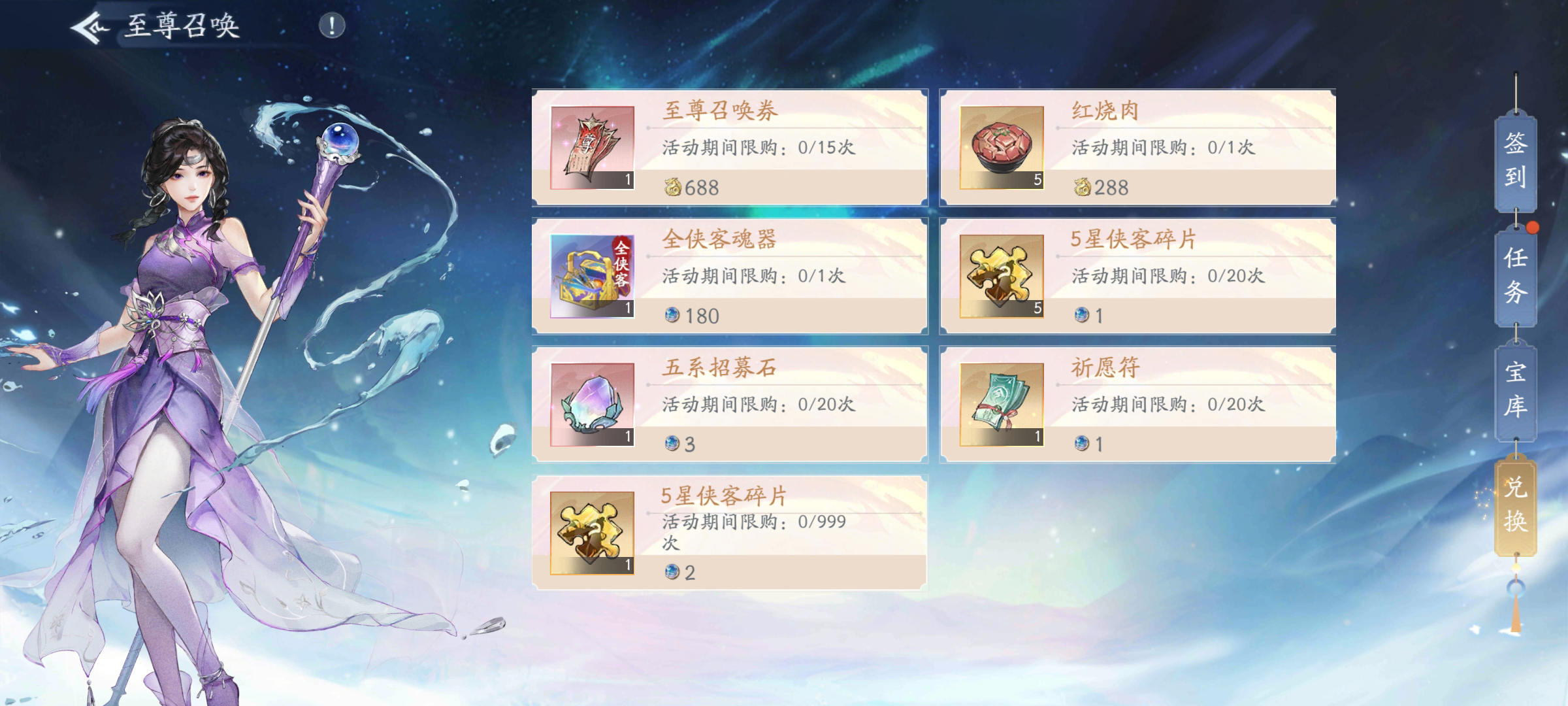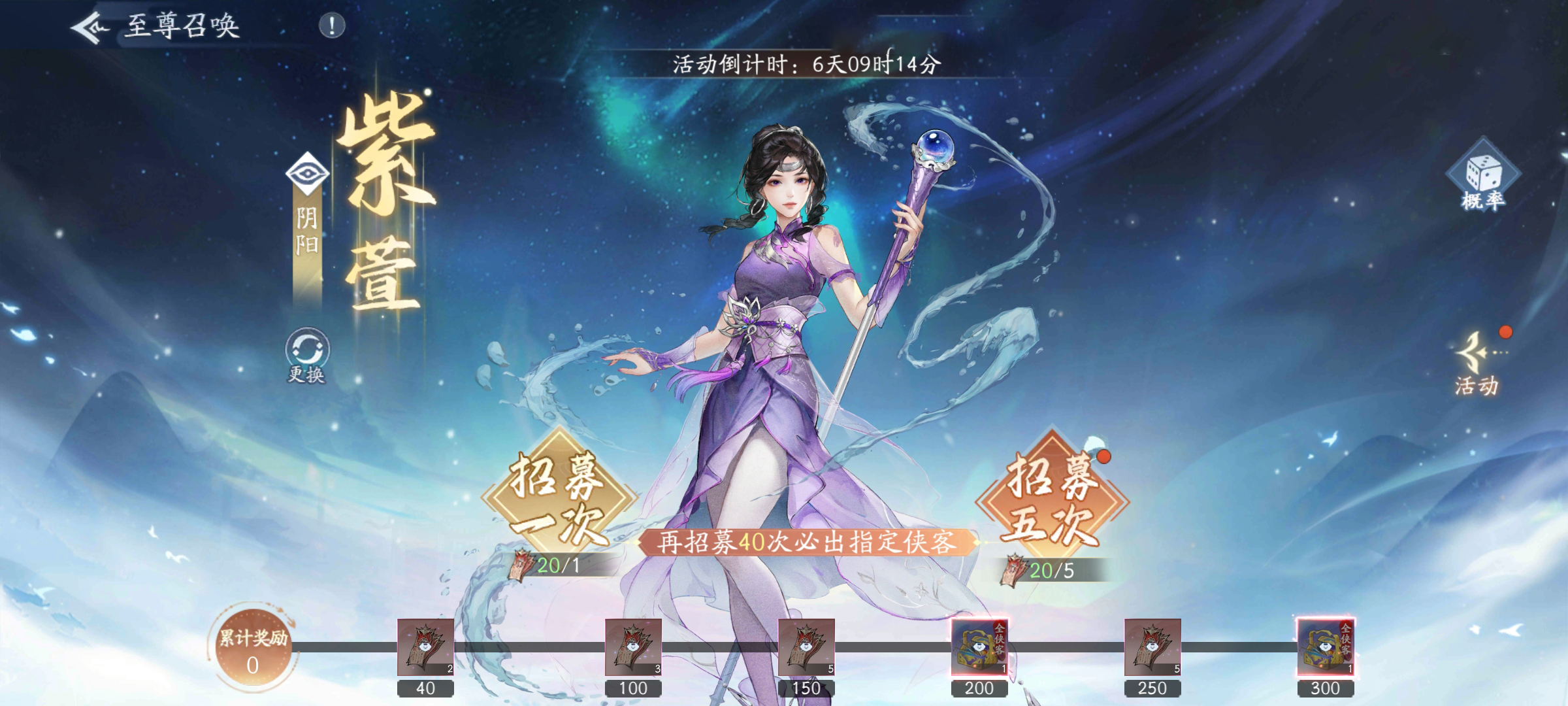 活动开启期间,大侠们可通过道具【至尊召唤券】在“至尊召唤”界面选择心愿侠客进行招募,招募40次必得指定侠客。