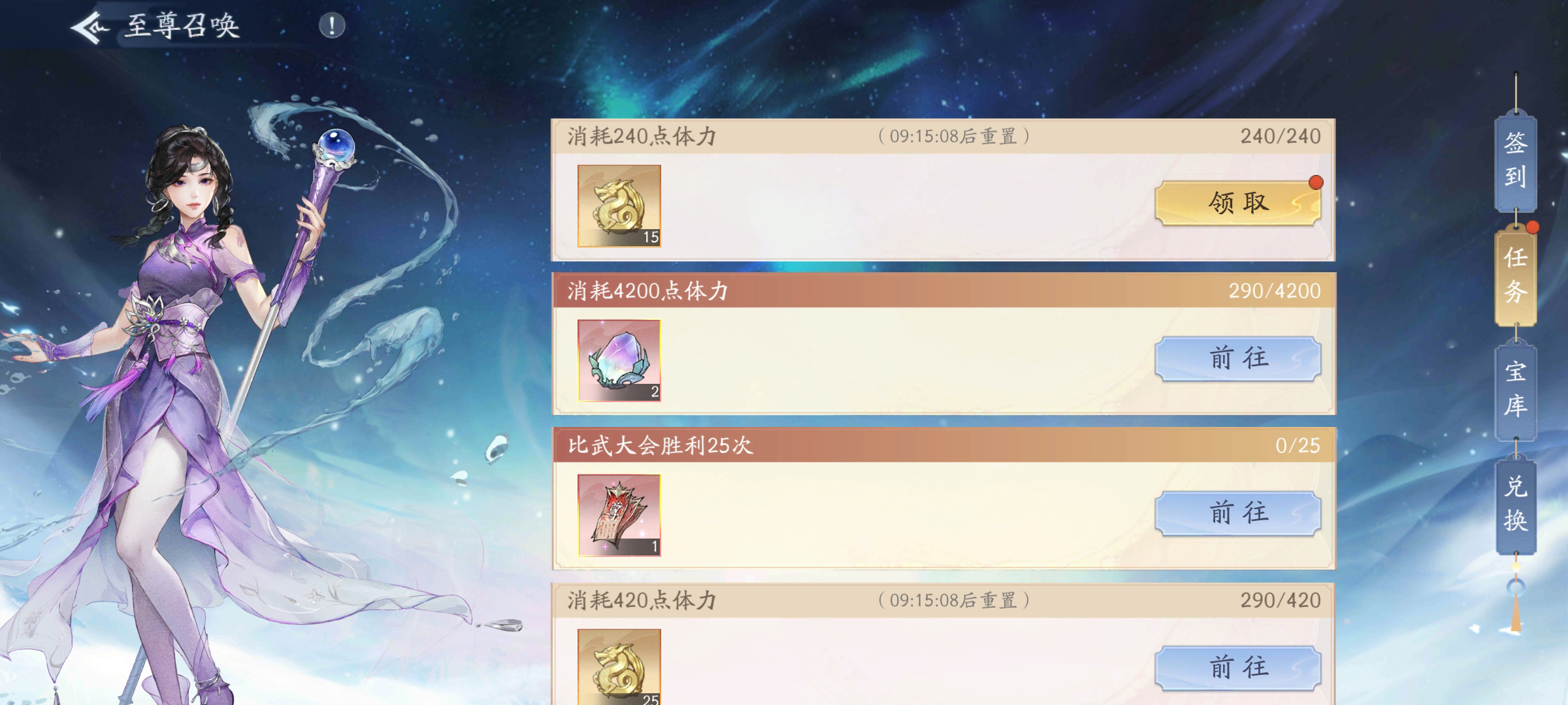 每日完成活动任务可领取至尊召唤券,还可获得五系招募石和金龙奖励!