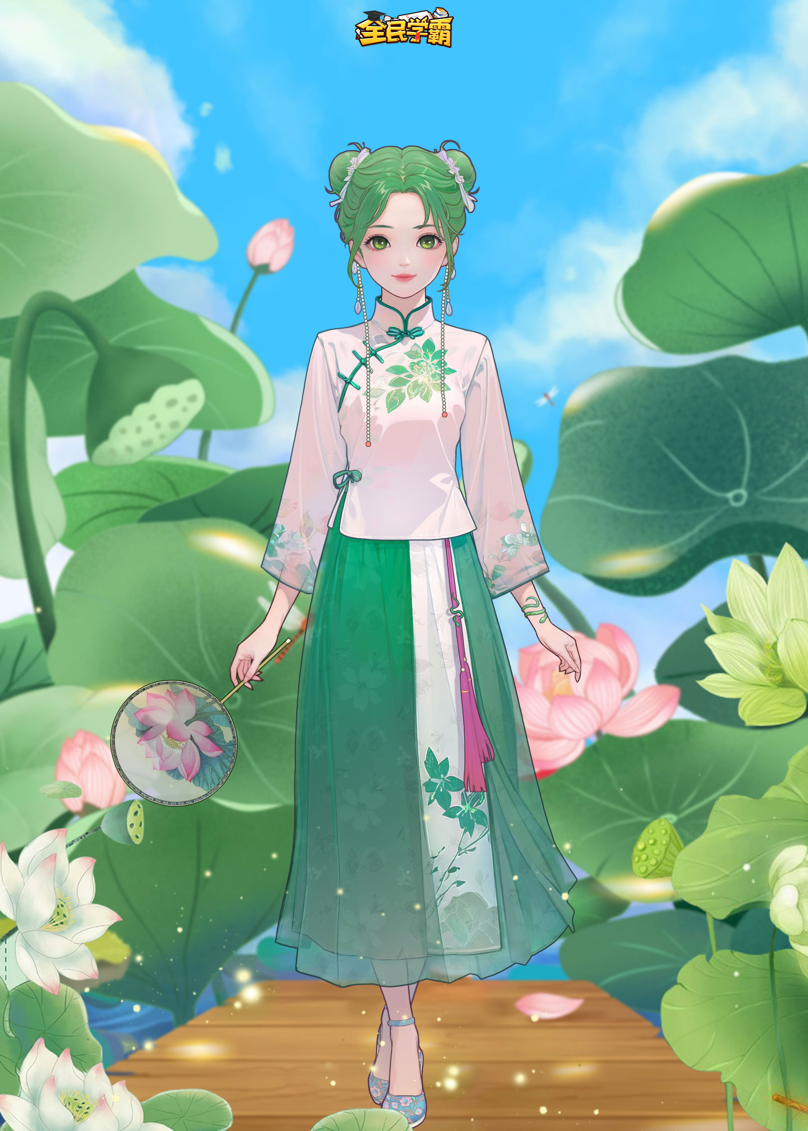 “荷塘少女”(普通时装)佘小青保留了标志性的双丸子头和青色系古装风,只不过这次将短裙换成了长裙,但无论是元气少女还是小家碧玉,是开朗型甜妹还是文艺型甜妹,小青妹妹依然那么可爱动人!