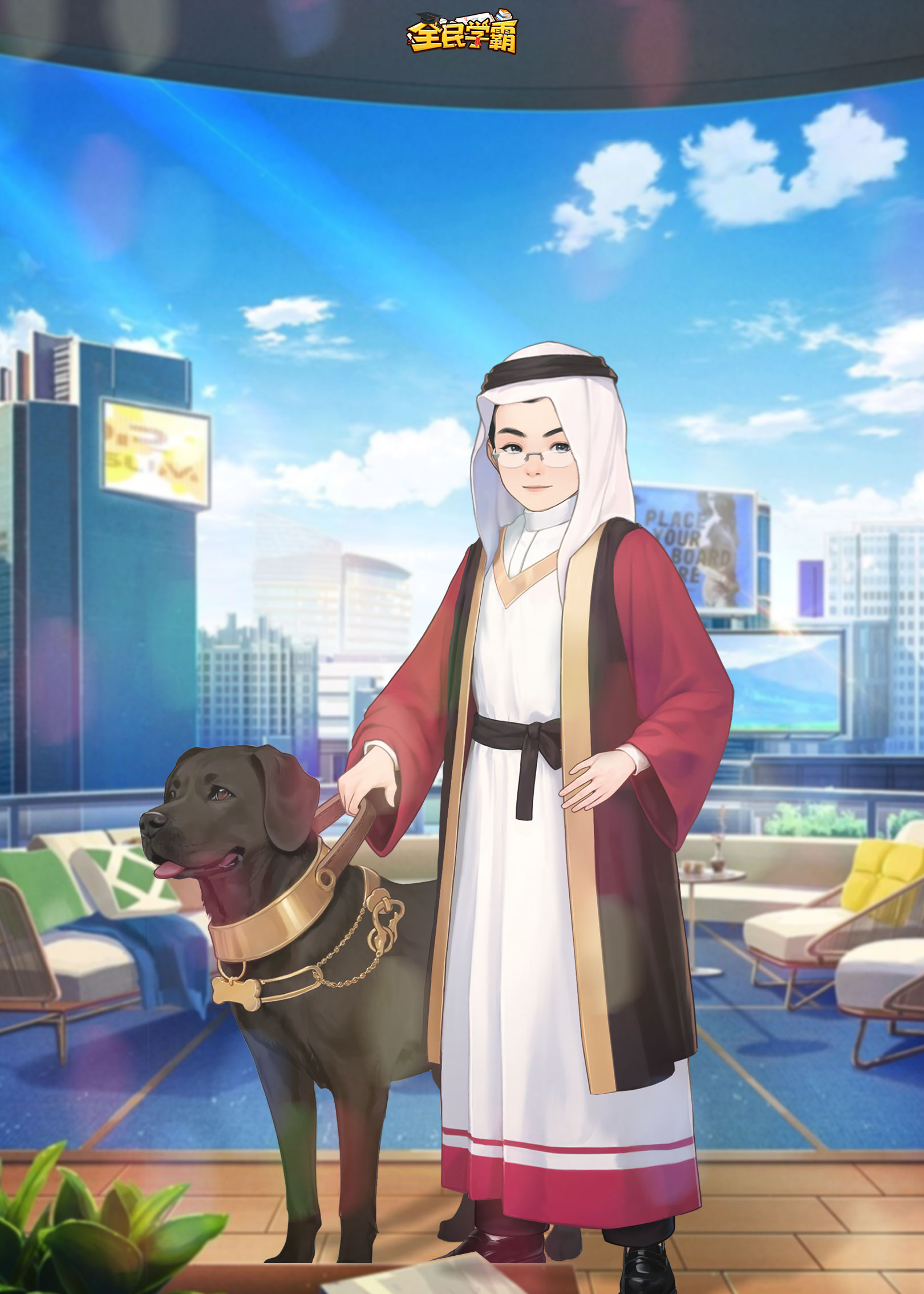 “派对王子”(扮演时装)总裁生身穿阿联酋传统长袍,一匹佩戴黄金牵引绳的威猛猎犬在侧,奢华风范尽显。该扮演时装可使其初始潜力提升至19.3 ,扮演天赋“私人订制”可使自身全科基础成绩+2%,所有学生特训室VR体验收益+5分钟。