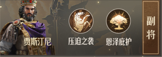 压迫之袭为追击技,可以完美配合其固有技能,在增加输出的同时,降低对手的武力值,对阵武力型主将队伍时,可谓是奇效;
