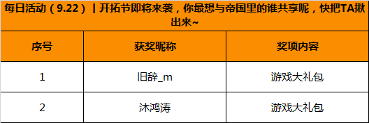 随机抽取三名领主送上游戏大礼包一份