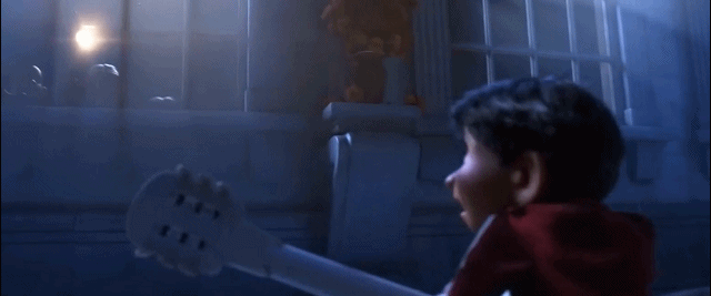 米格尔的旅程,始于一场梦想与家庭的激烈冲突。他出生在一个世代制鞋、视音乐为禁忌的家族,只因他的曾曾祖父曾为追求音乐而抛家弃子。这条禁令如一道无形的高墙,将米格尔炽热的音乐梦想紧紧封锁。他偷偷制琴、暗中练习,每一次拨弦都是对自由的低语,每一次被发现却换来奶奶愤怒的撕毁与斥责。那把被砸碎的吉他,不只是乐器的毁灭,更是梦想被否定的痛楚,是少年孤独灵魂的无声呐喊。