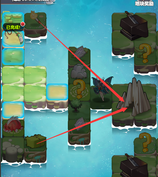 注意——云寒所在的2×1地块上方还有一个1×1的地块会被“新星徒”箭头遮挡,需要先净化该1×1地块,方可解锁云寒所在的地块。