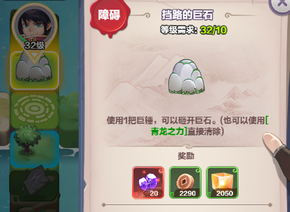 击败巨蟒精,将红框处的【守护石狮】转动至正确方向,即可借用雷霆之力分别击碎一个巨石,其余的巨石可以使用四象之力-青龙之力清除。