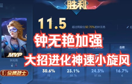 钟无艳加强,大招进化神速小旋风,巅峰赛实战对局