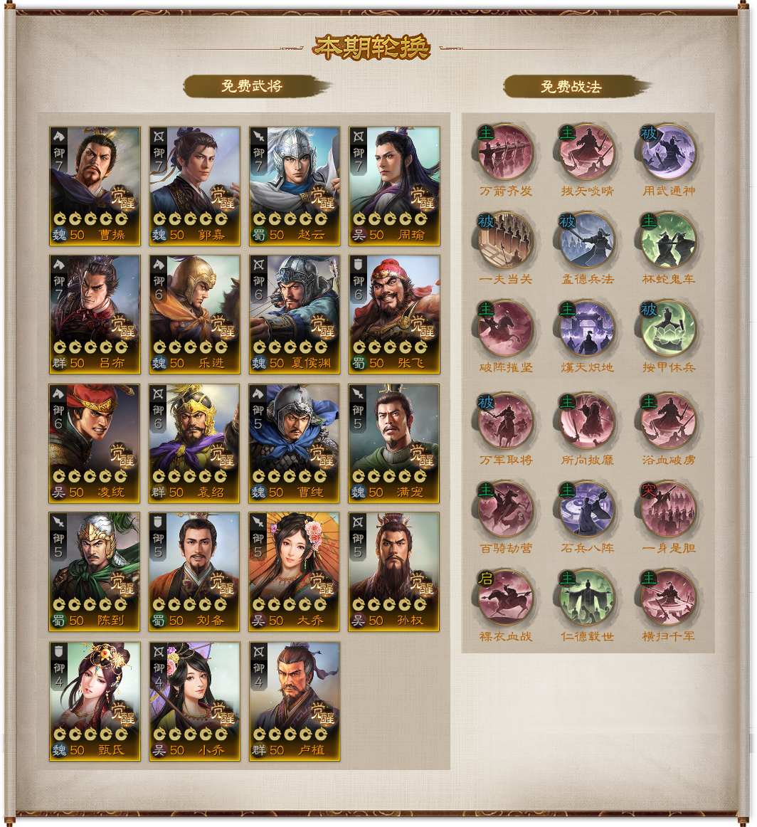 庆典福利:9月28日~10月15日期间,限免武将、战法翻倍,并额外增加三皇至限免武将池