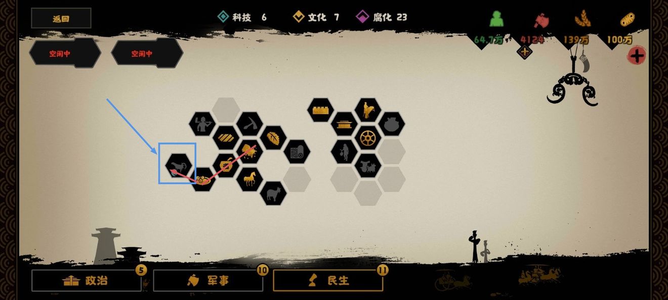 蓝色方框里的一次+5姜尚和+5妇好的好感,但是会增加15腐化,推荐谈判时候再点,第一次是需要5分钟,加速一次后15秒一次,CD4秒