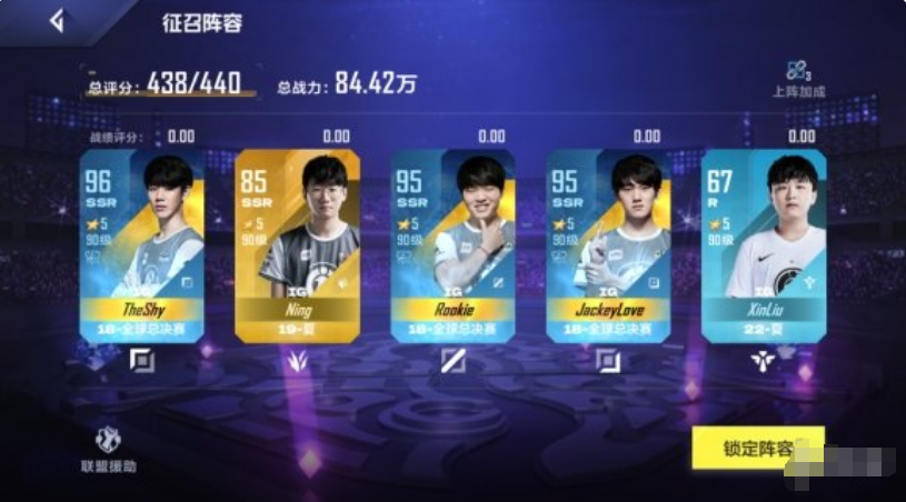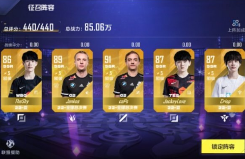 这套阵容的优势在于五个散装羁绊,且全员金卡,也是Shy散的最优套路。比较麻烦的是Caps的获取。