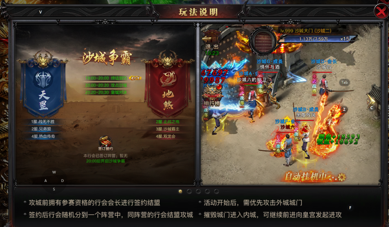 热血沙城争霸,点燃兄弟热血 在传奇的世界里,沙城争霸是一场万人瞩目的热血盛宴,是兄弟情义与团队荣耀的激情碰撞。如果你渴望体验热血战斗,感受万人同屏的震撼,那沙城争霸绝对不能错过。