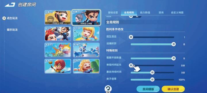 少年们可以设置对局胜利条件,可选择逃生逃出人数和追捕抓捕人数来自定胜利规则,41模式逃出与抓捕人数可调区间为1-3人,82模式为1-8人。
