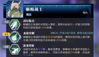 1.蜥蜴战士、蜥蜴卫兵、蜥蜴勇士都是输出型的人物,他们所带的技能都是一个普攻,一个必杀,一个连携,其实这一点从他们的名字上也可以看出来,而且,再透漏一个小秘密,他们的长相也是大差不差哦。