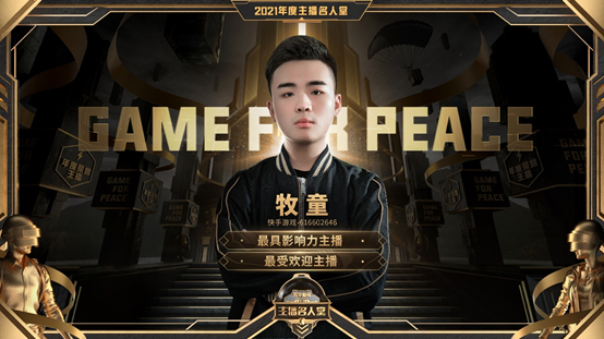 恭喜牧童荣获2021年度《和平精英》主播名人堂【最具影响力主播】【最受欢迎主播】【年度十大主播】