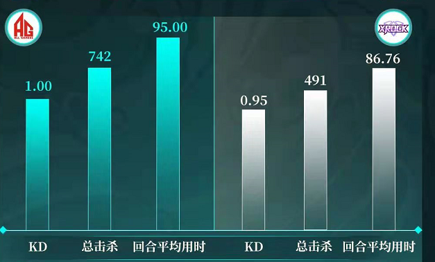 在AG与炫石的战队数据对比中,二者的KD差距仅有0.5,这也体现出两支队伍的状态水平相差较小,这更考验队伍的临场状态。而在回合用时方面,炫石用时少于AG,这也体现出炫石更偏向快速作战,快攻的方式或是炫石从AG手中拿分的最佳方式。