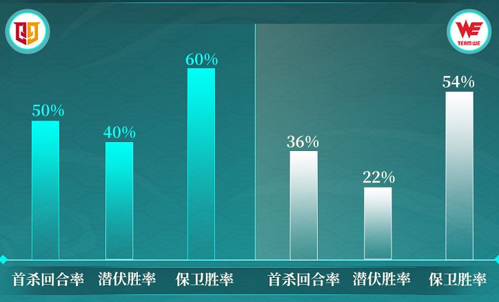 而在胜率方面,显然两支队伍都更适应保卫者阵营,这意味着两支队伍对垒时,谁能在潜伏者掌握主动权,那么后续便可在保卫者争取更主动的局势。当然若一方在潜伏者时处于落后的比分时,那么当其担任保卫者时,可扭转队伍的劣势,完成翻盘。