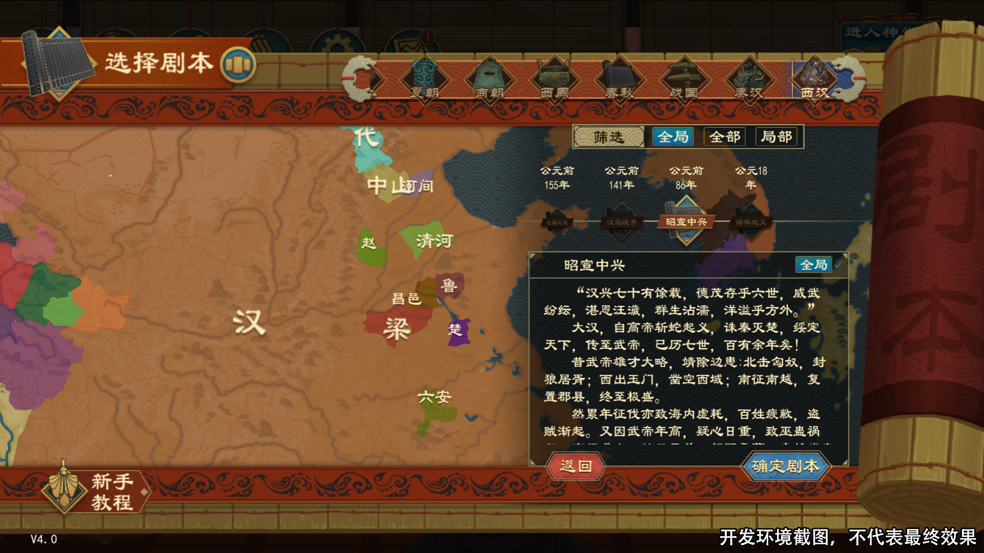 本次版本更新将带来「西汉剧本包」,撷取西汉四个时间节点,再现 “明犯强汉者,虽远必诛” 的峥嵘岁月: