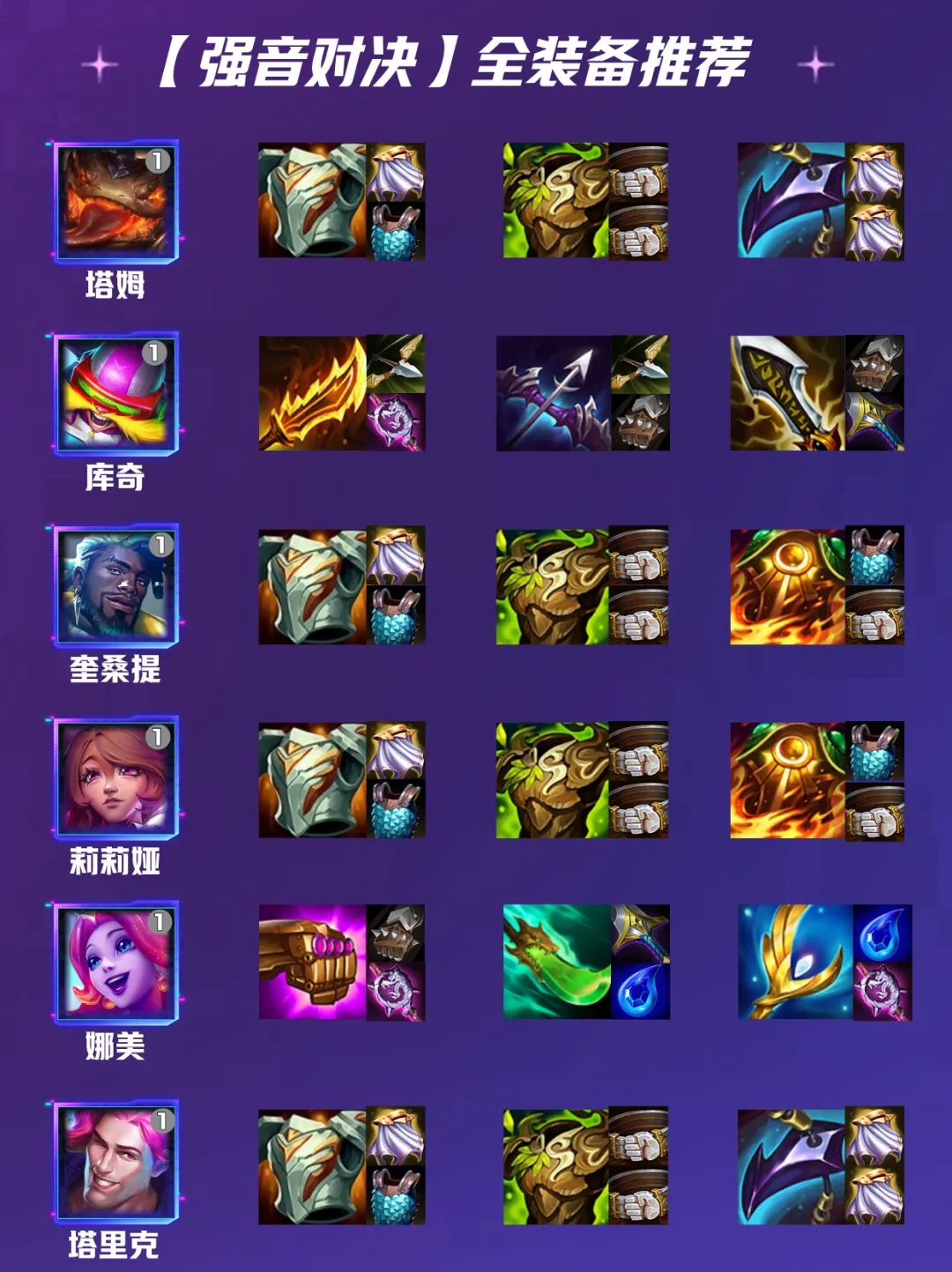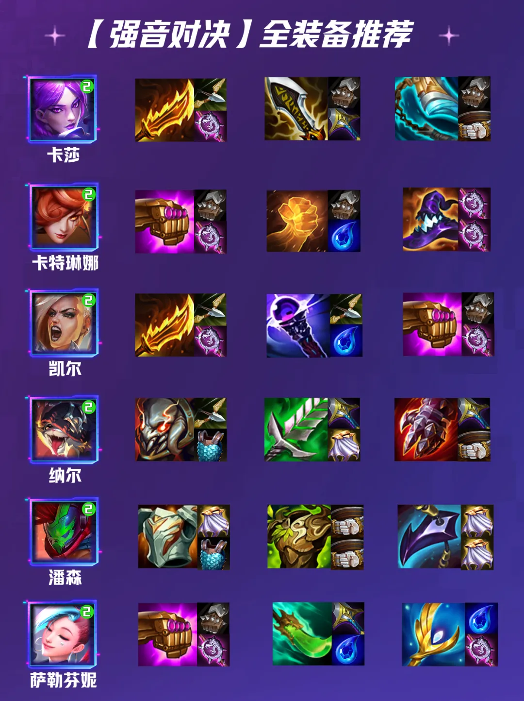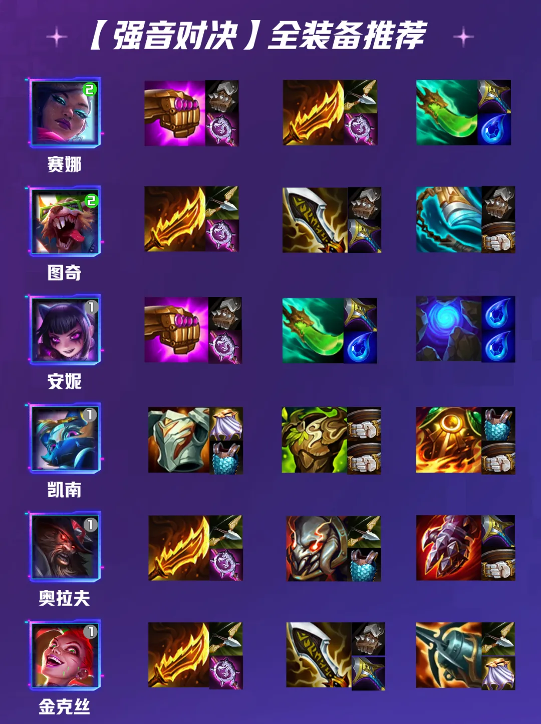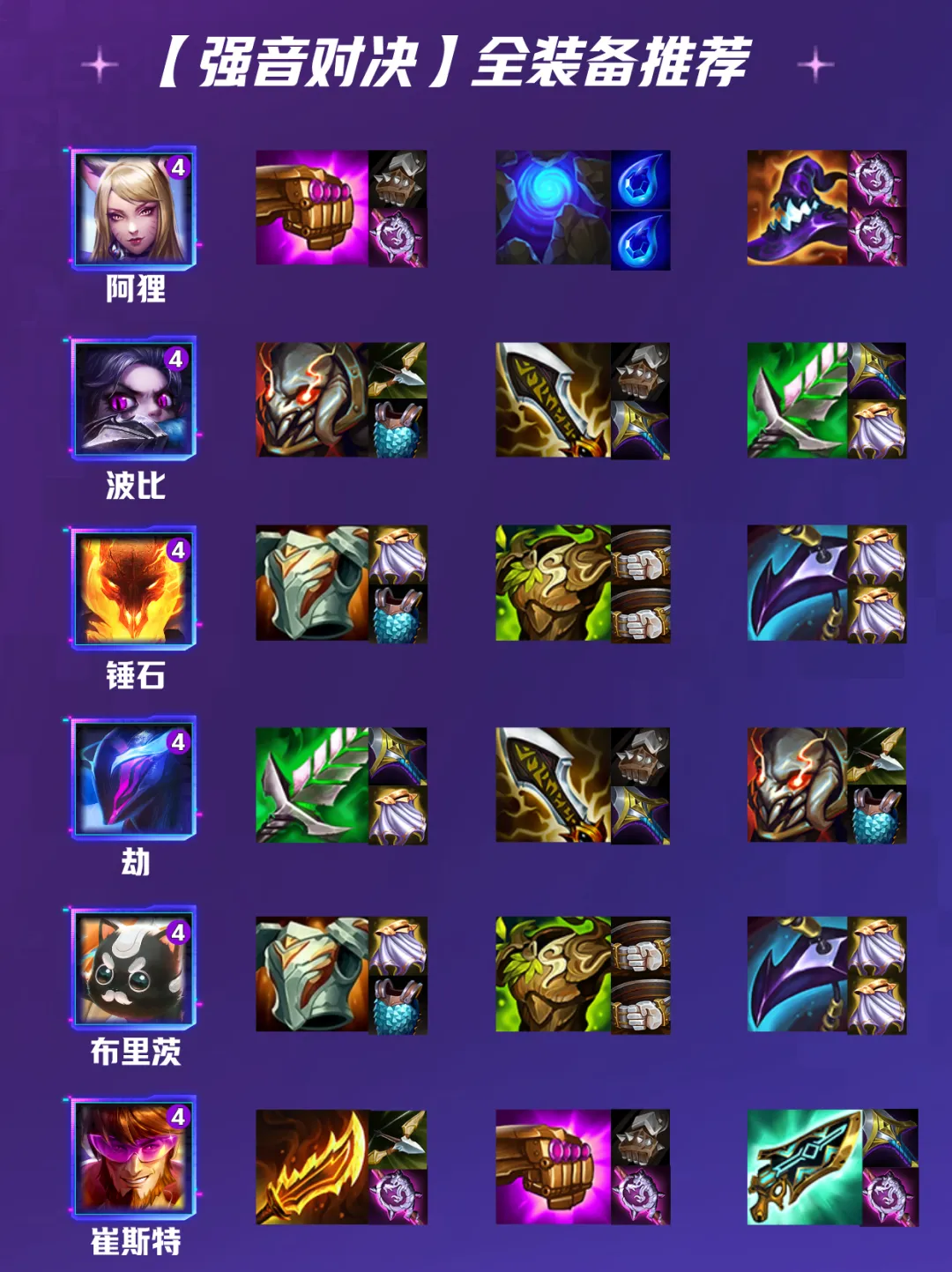 今天金宝儿就针对【强音对决】赛季为弈士们献上一份【弈子出装攻略】~助力各位弈士假期爽玩铲铲!