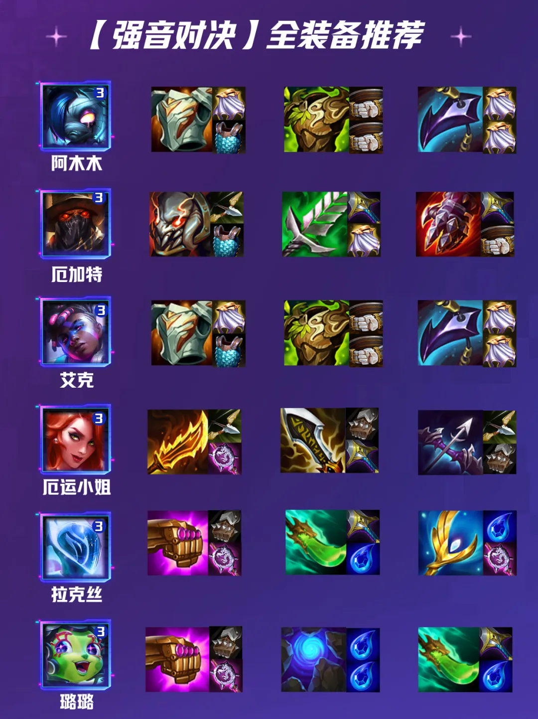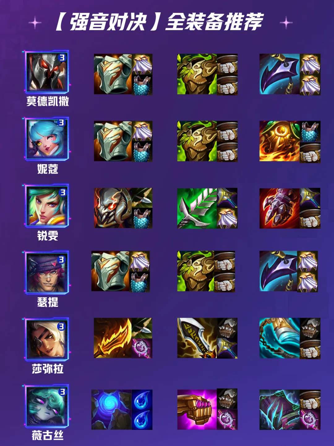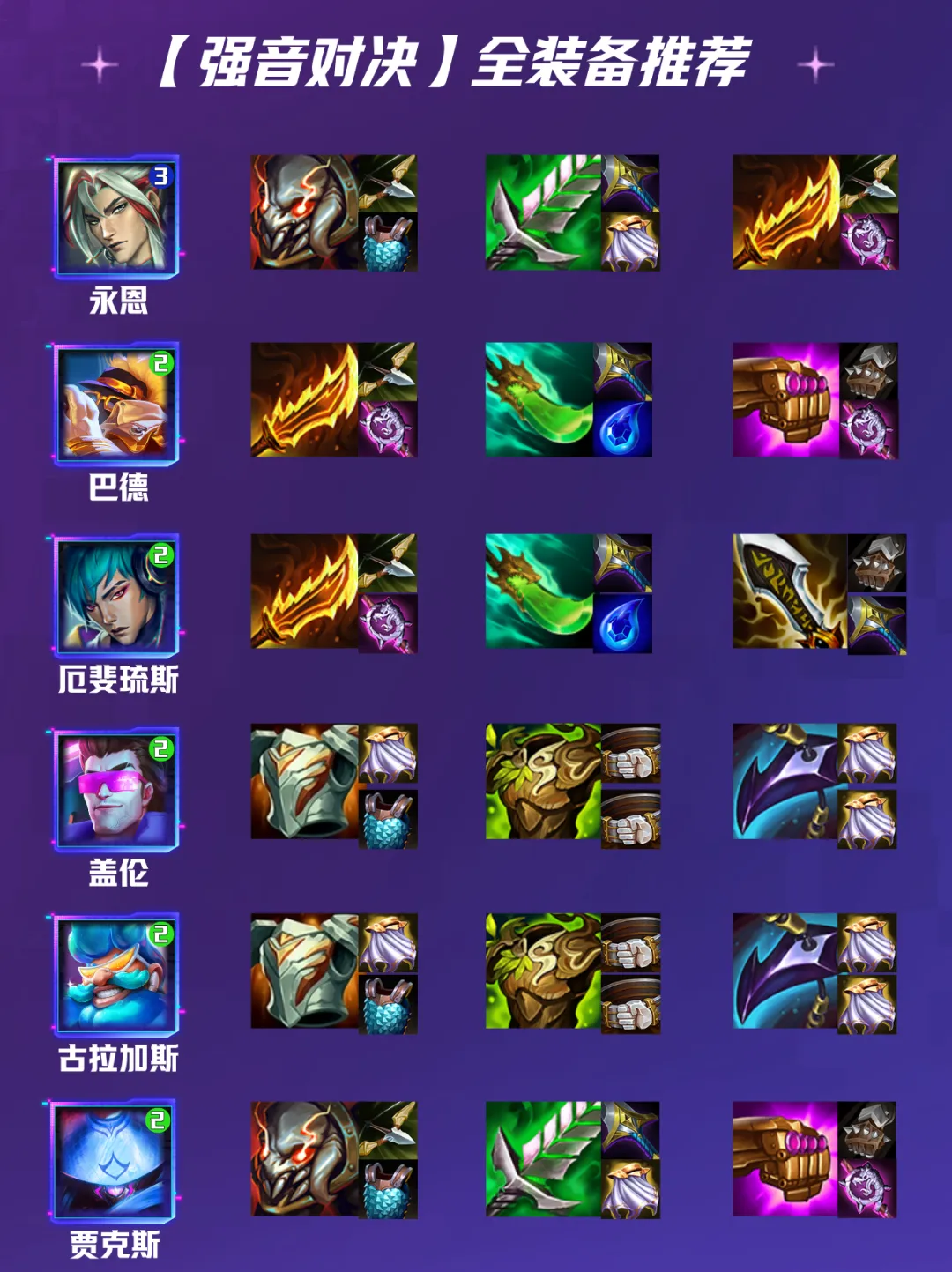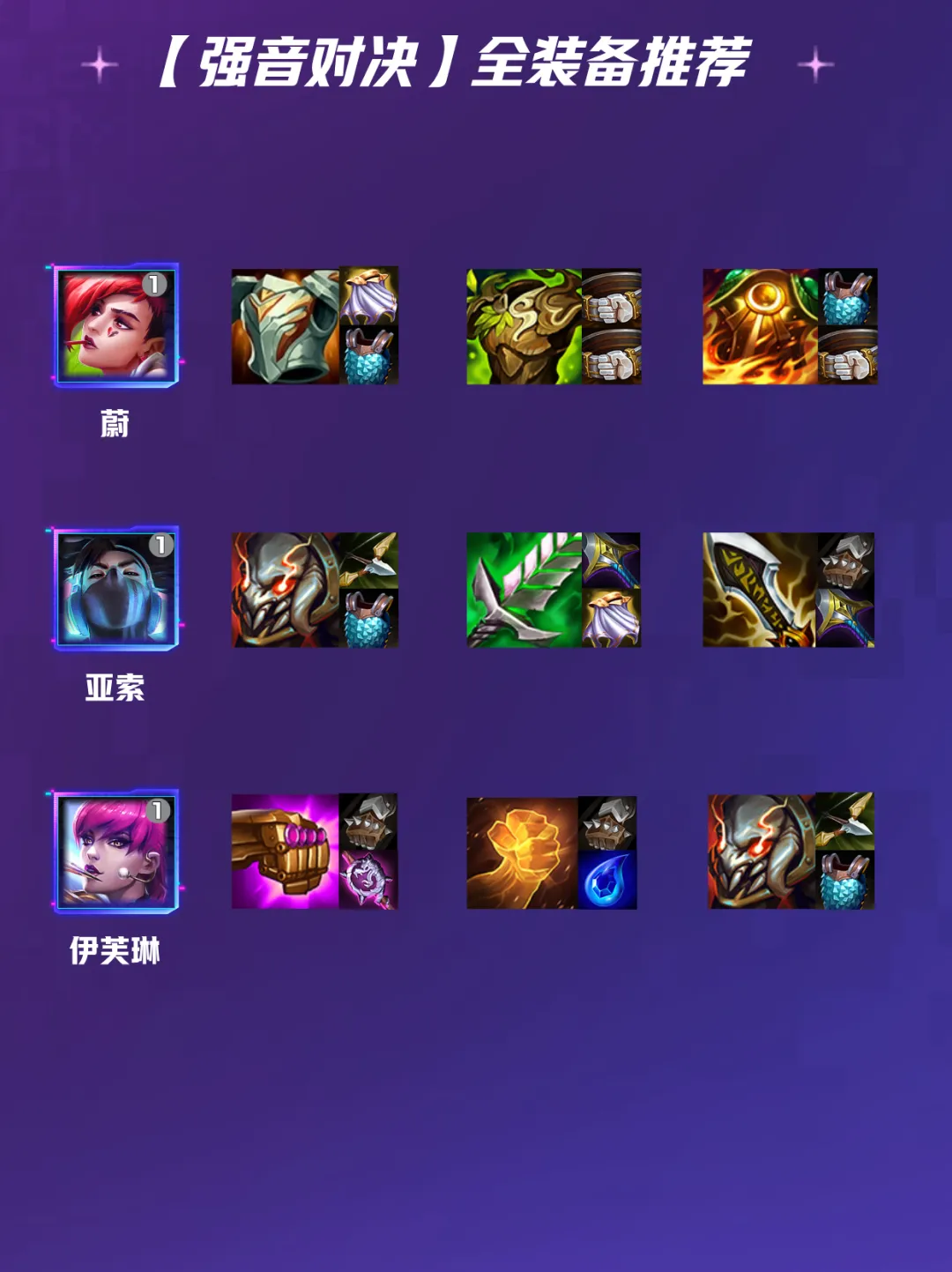 今天金宝儿就针对【强音对决】赛季为弈士们献上一份【弈子出装攻略】~助力各位弈士假期爽玩铲铲!