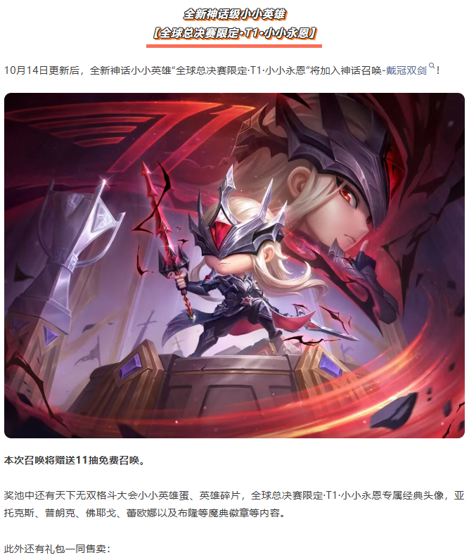 英雄羁绊【小小永恩】新增成员“全球总决赛限定·T1·小小永恩”