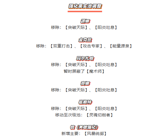 优化了“强音对决”弈子模型大小。修复了强化果实“身体变换”偶现部分弈子变身为凯尔后异常施放技能的问题。