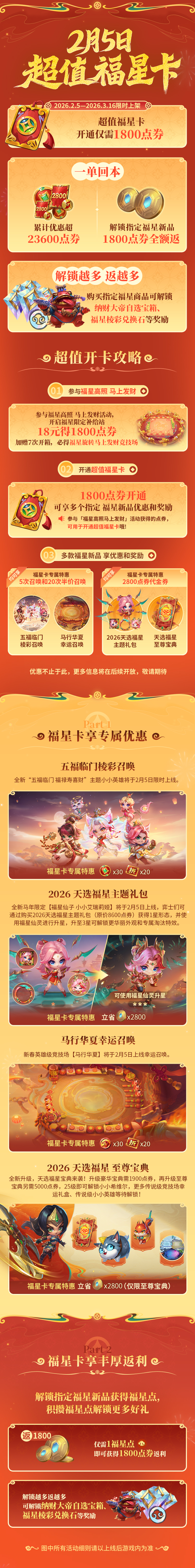 2026年2月5日,超值福星卡重磅登场!仅需1800点券解锁更多专属优惠!