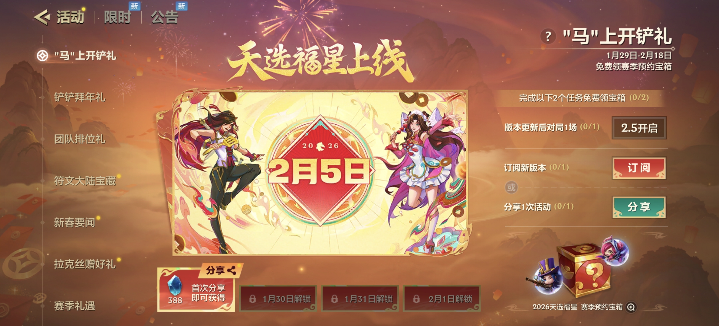 🌟2月5日天选福星上线,福星闪闪,马上开铲!