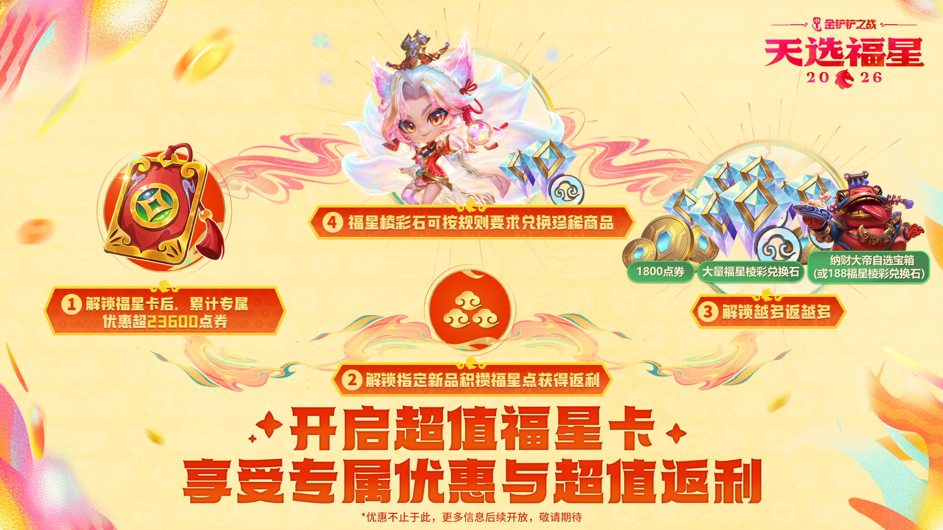 开通即享2月5日指定福星新品专属优惠,累计价值超23600点券,超额返利,一单回本!