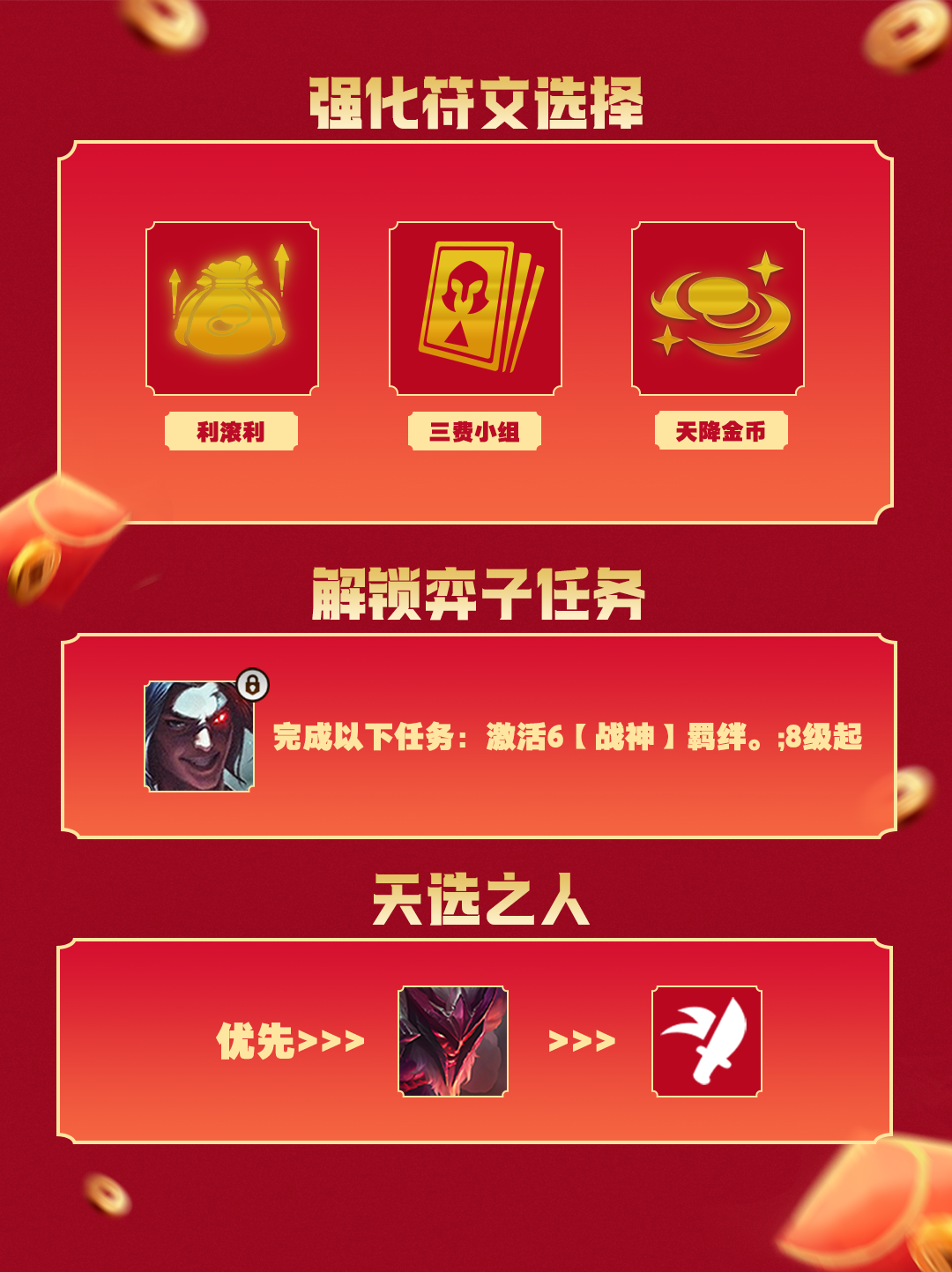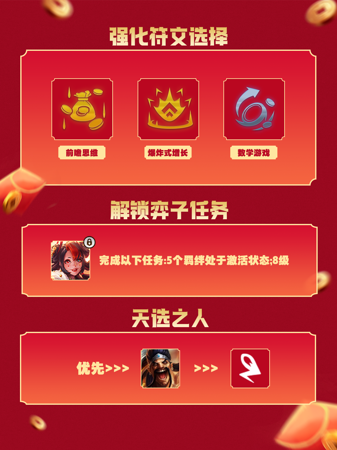 🎉金铲铲之战祝弈士们福财两全,诸事顺遂——正月初五“天降金币”,新的一年“福星”高照!