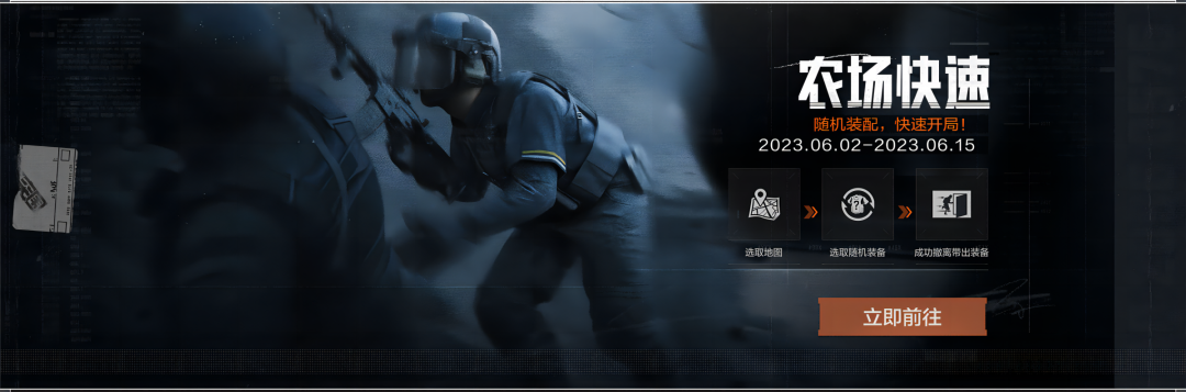活动期间农场将开放单独的快速模式活动入口,不影响正常对局模式体验。先锋们可前往快速模式入口进入活动,注意,快速模式中无法带入已有物资装备,先锋刷新并选取随机装备即可快速开局。