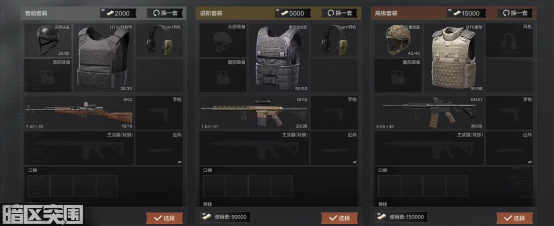进入对局后点击界面右下角的随机装备:随机装备分为普通、进阶、高级三档套装,每套装备的对应价格与搭配各有不同,大家可以花费与装备价值相同的柯恩币一键购买穿戴全套装备。先锋如果对当前的装备方案不满意,也可花费一定柯恩币或者刷新券刷新随机装备。