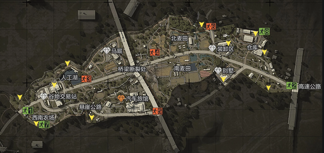 活动期间,农场快速活动限时开放农场地图,与正常模式中的农场封锁区相同,有四个常驻撤离点+两个常驻条件撤离点:
