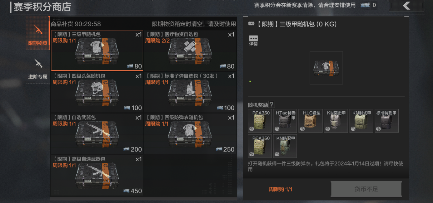 1.赛季积分商店普通手册新增限期物资,兑换后可开出高价值物资。期限物资需在赛季时间内使用,赛季结束时将过期,先锋们请及时使用。