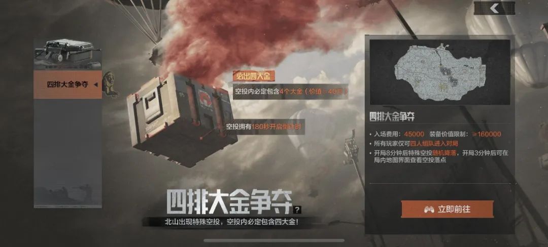 【大金争夺】限时返场,特殊空投必定包含四个大金!该模式必须四人组队进入对局。