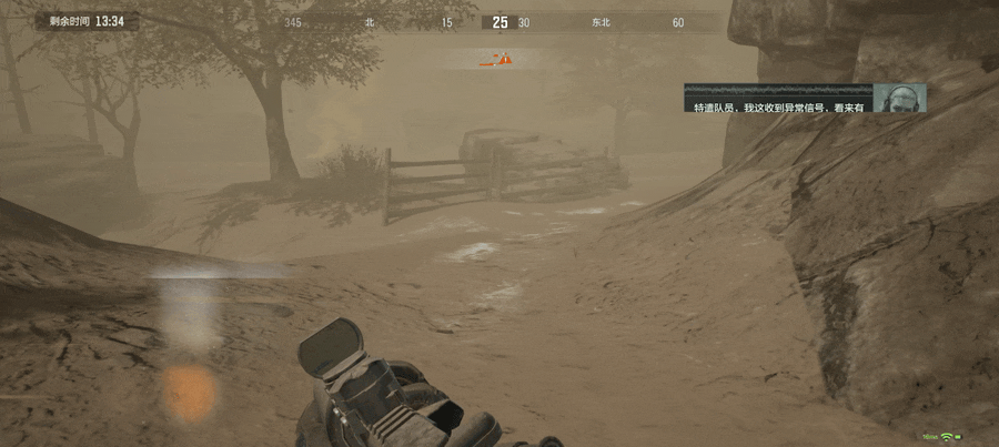 在室外,猛烈的沙暴也会严重干扰特遣队员的视野,就连热成像也会因为沙暴的影响而变得模糊。室外的交火距离会因为视野的限制而降低,因此在信息获取受限的情况下,永远要提防下一个拐角!