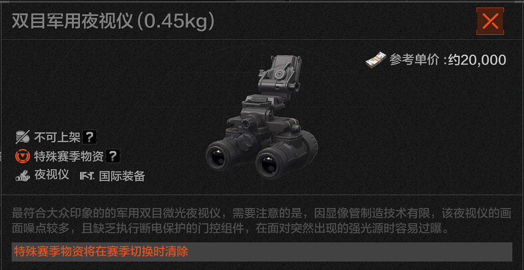 最符合大众印象的军用双目微光夜视仪,需要注意的是,因显像管制造技术有限,该夜视仪的画面噪点较多,且缺乏执行断电保护的门控组件,在面对突然出现的强光源时容易过曝。