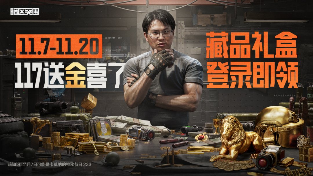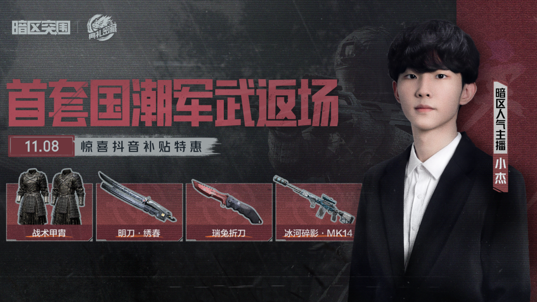 除了117送福利之外,11月8日还有直播返场活动!周六晚19:30,锁定抖音暗区突围官方直播间,首套国潮军武返场,敬请期待!