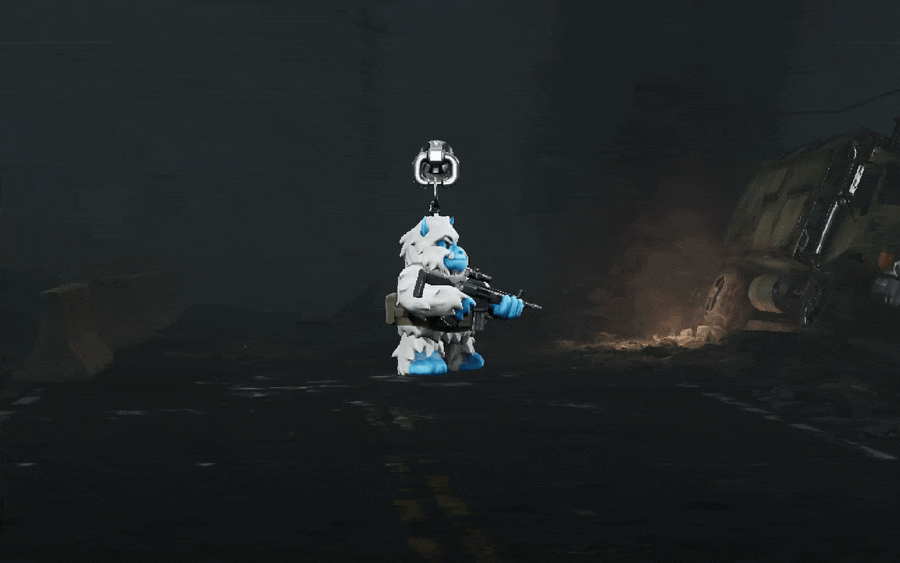 使用树脂与调色颜料模拟冰封的震撼弹外观,制作灵感来自于某位特遣队员…是的,他身上所有投掷物都被冻住了。