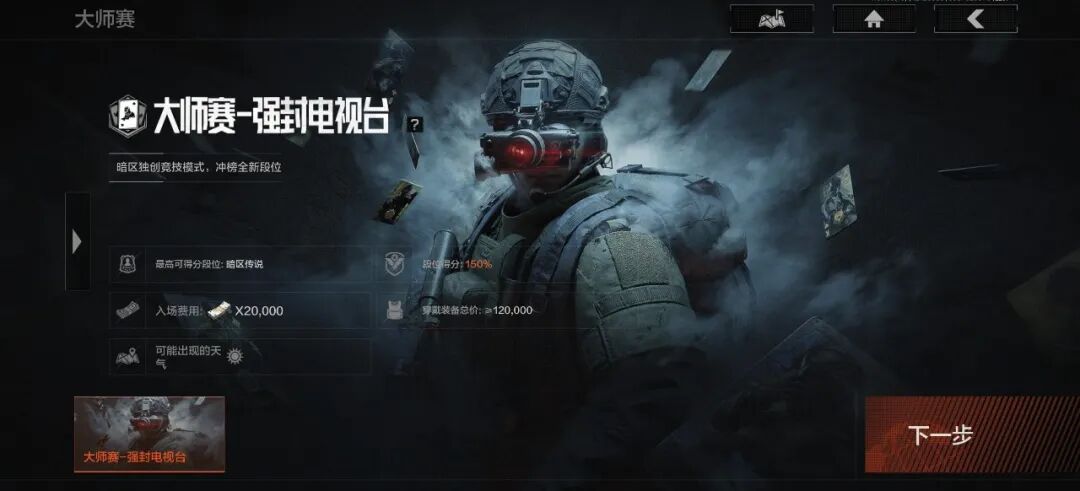 【电视台大师赛】的地图固定为强化封锁难度的电视台,先锋们入场需要穿戴价值大于等于12万柯恩币的装备,并且支付2万柯恩币的入场费用。局内的物资能够自由带出,对局中不会出现伪装者。