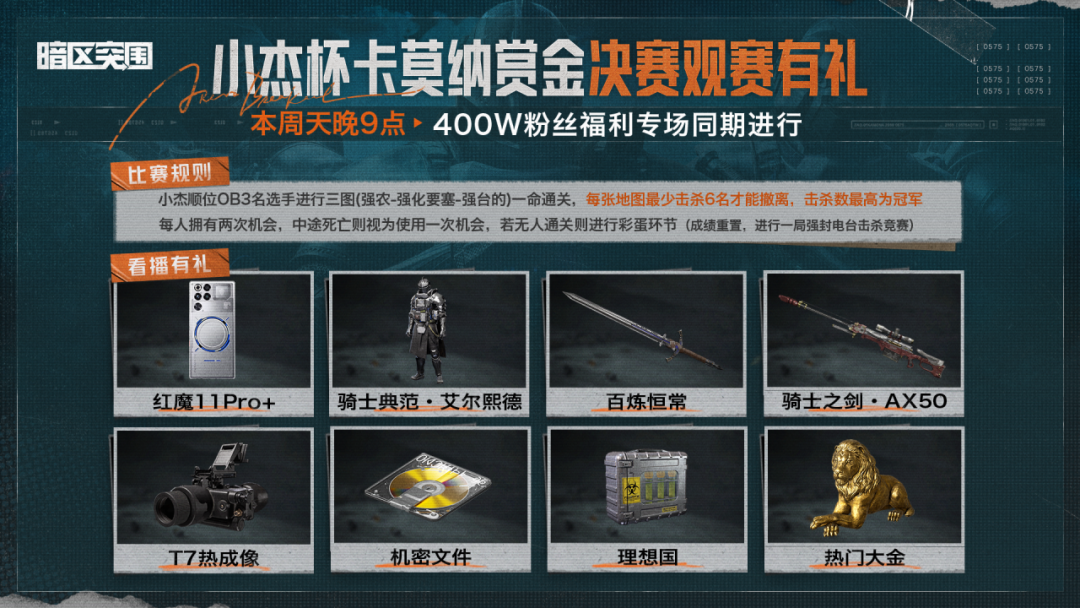 观赛即有机会赢取红魔11Pro+手机、机密文件等海量游戏好礼!锁定直播间,见证冠军诞生!