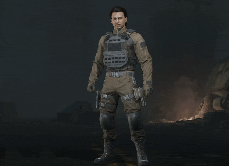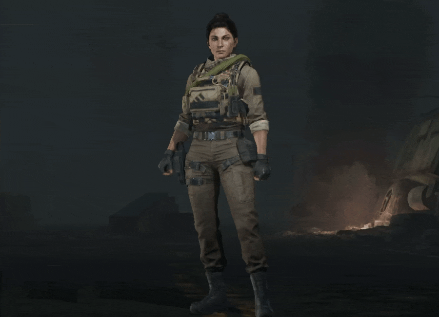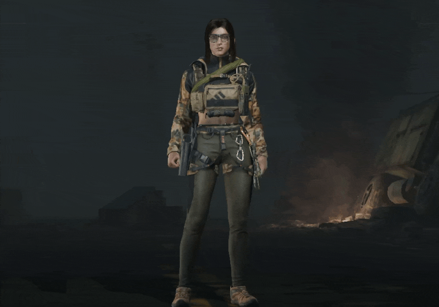贴合的运动背心与紧身裤勾勒出黑卡蒂干脆利落的飒爽英姿,标志性的战术目镜则为深渊小队队长冷静沉稳的气质做了注解。