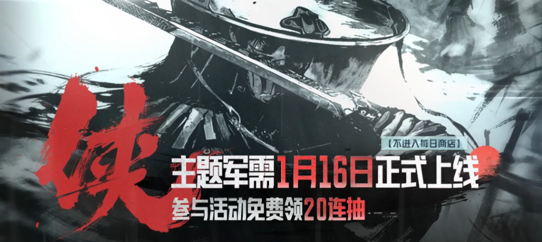 暗区「侠」风来袭,全新【侠】主题系列军需将于1月16日上线!近战武器【幽燕钛玄】,全新的外观、全新的姿态!参与活动即送20连抽福利!