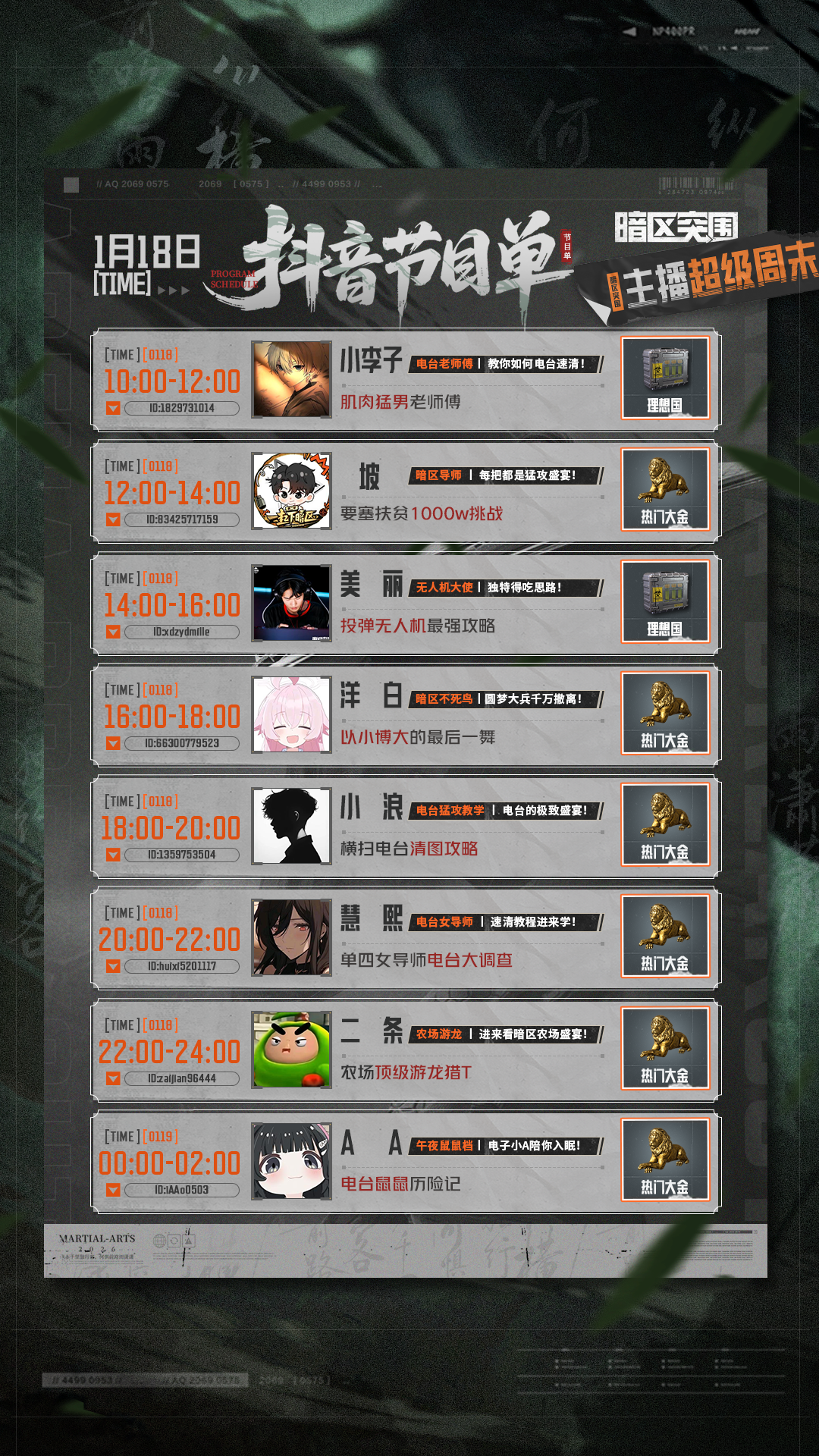 锁定直播间,机密、理想国、六格、大金等福利狂撒不停!