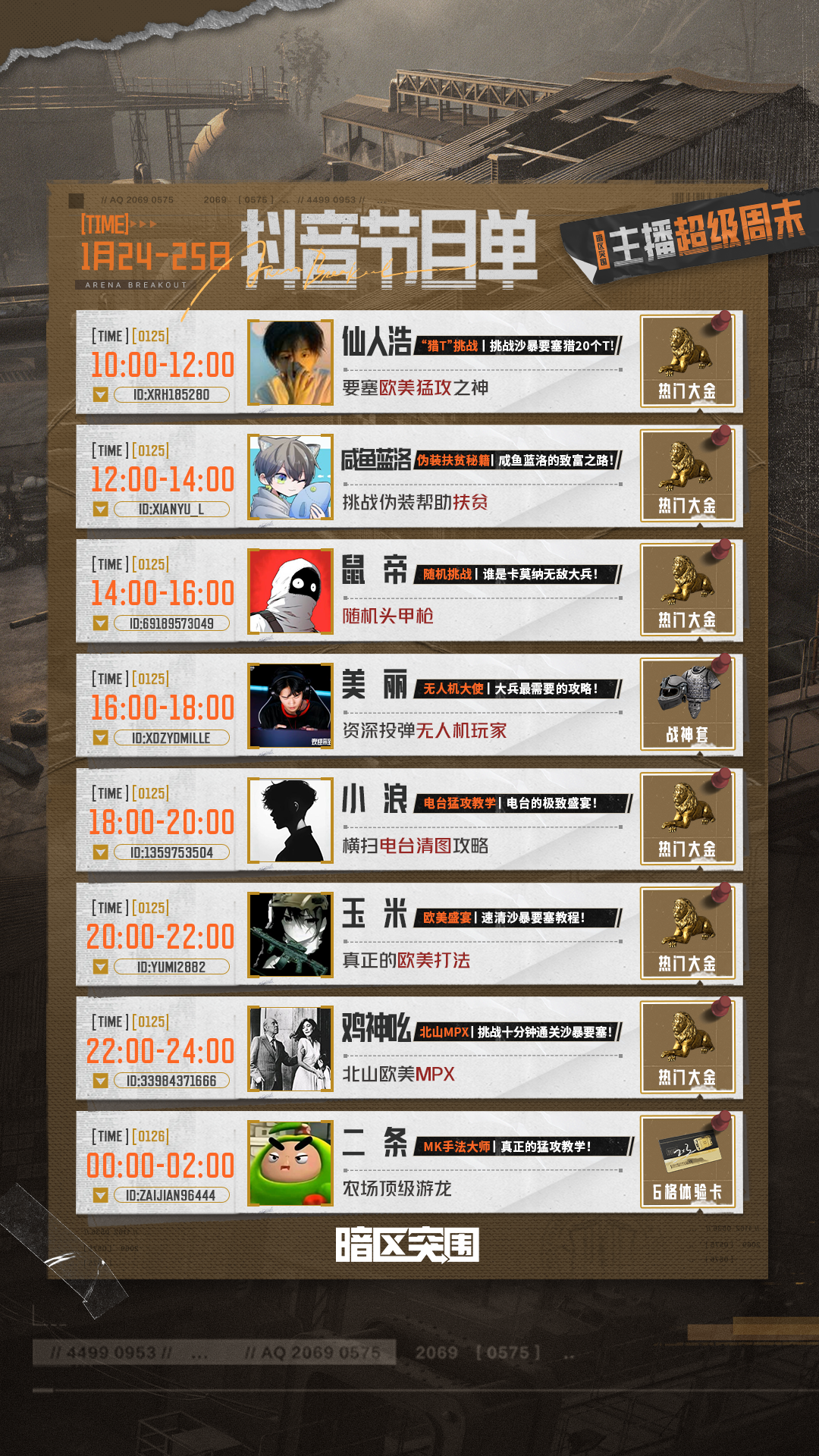 从沙暴要塞到北山农场,跑刀、鼠鼠、扶贫节目不间断!多位主播各显神通,锁定直播间,六格、大金等宠粉福利狂撒不停!