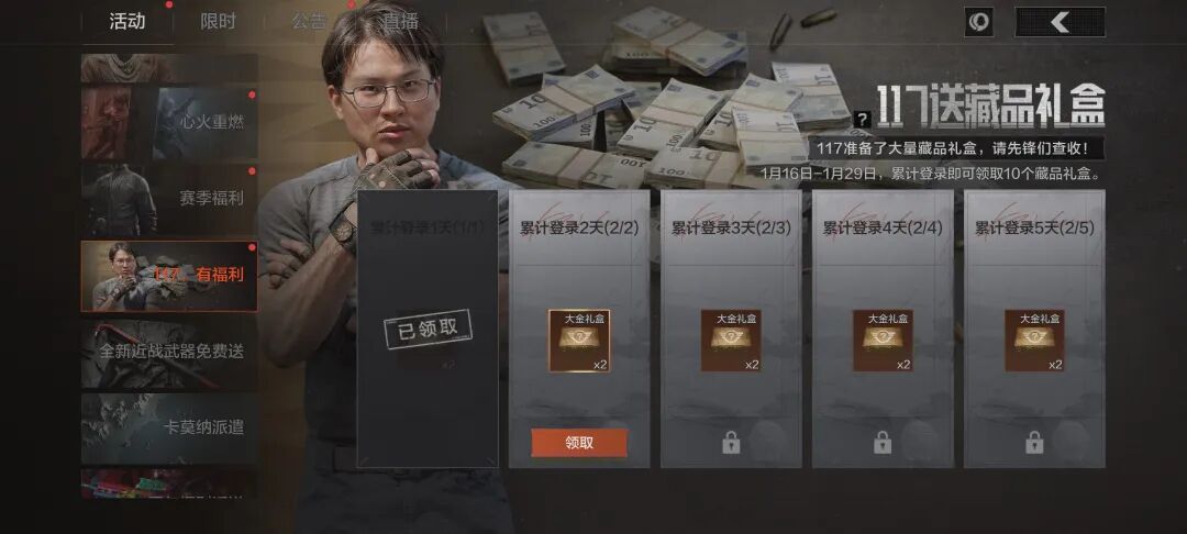 一七上暗,开金发财!活动期间,累计登录即可领10个藏品礼盒!