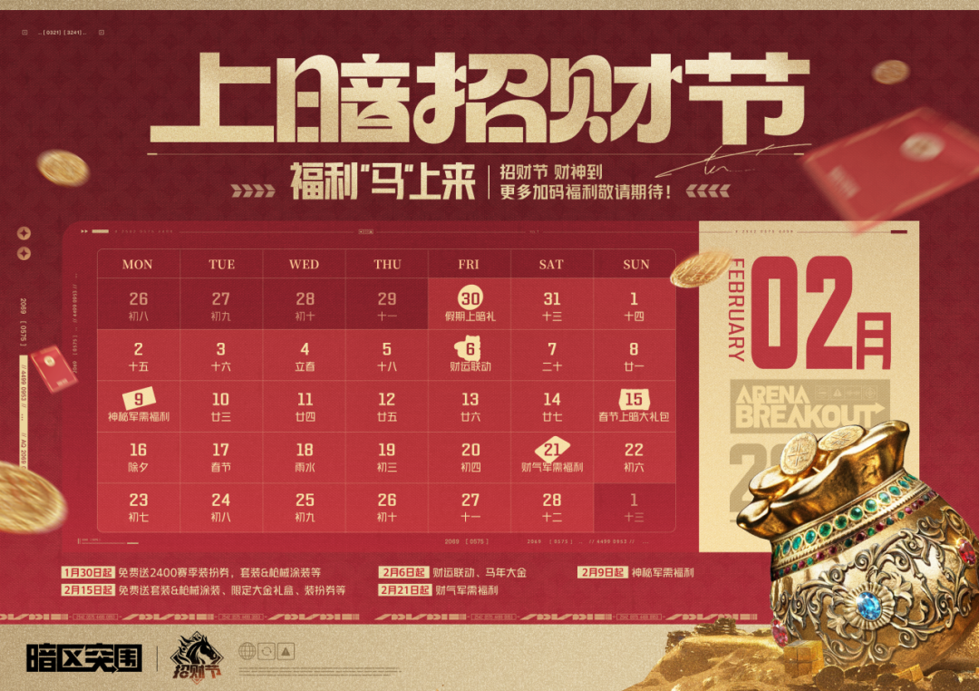 2月6日起,局内概率出现惊喜空投和贺岁红包,开启后几率获得马年新大金!