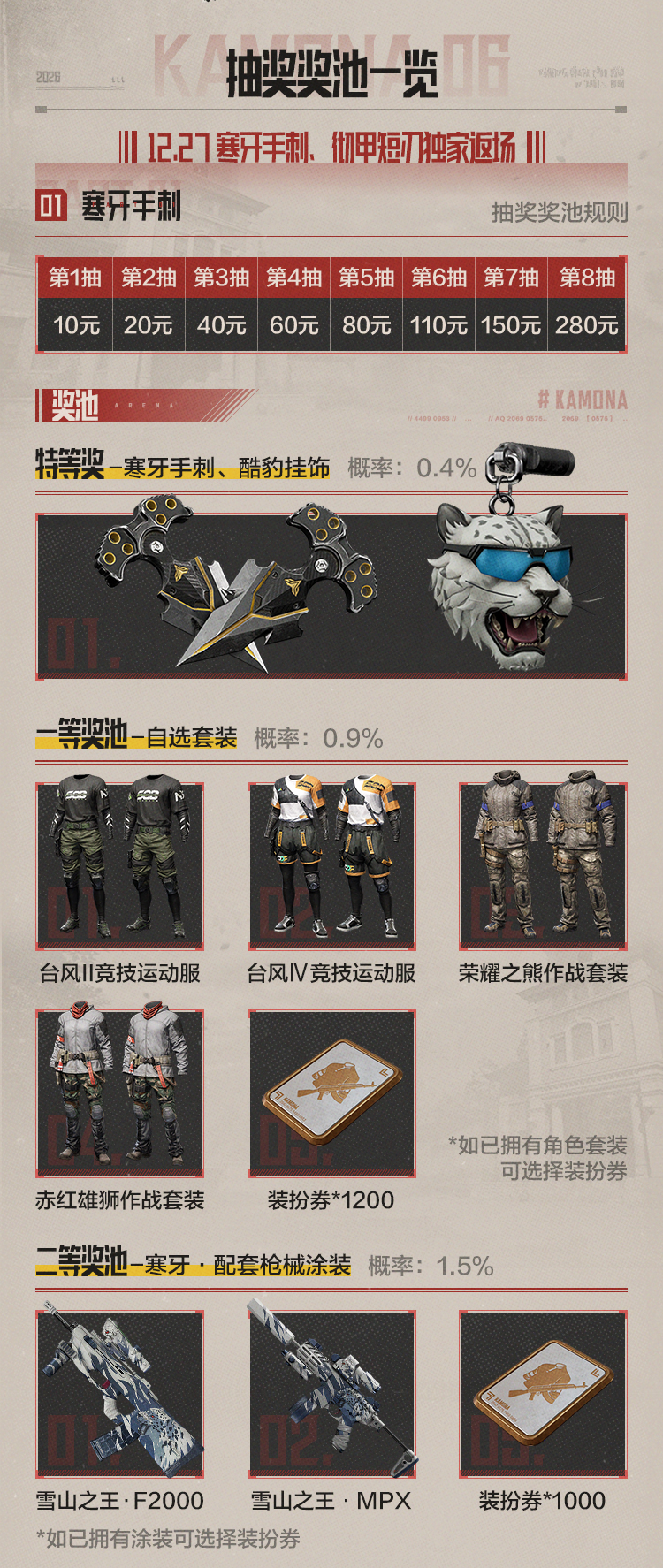 ·【寒牙手刺】【盘牙·彻甲短刃】【战术大师·FAL】独家返场!