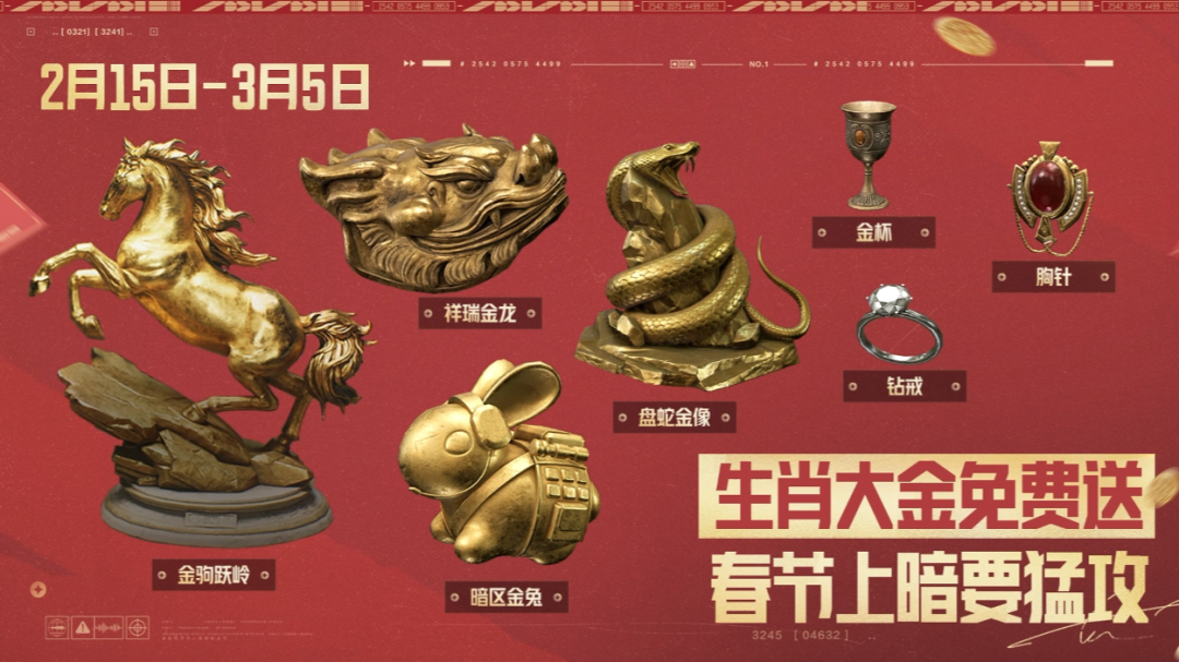 2月15日-3月5日,完成任务免费送生肖大金礼盒x20!