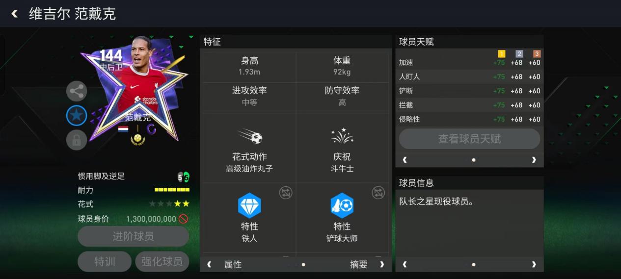 在队长之星活动中,队长之星范戴克闪耀登场,作为现役中后卫中的顶级球星,这张范戴克的数据配置非常优秀,卡面以活动的紫金为主色调,非常华丽。今天就一起来看看这位超级巨星吧!