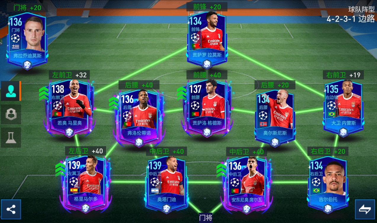 本菲卡大概率沿用熟悉的4231阵型。锋线上的单箭头是世界杯大放异彩的贡萨罗拉莫斯,他的终结能力是本菲卡背水一战的进攻保障。中场方面,冬窗从狼队租借至球队的格德斯将有机会在前腰位置首发登场,而后腰组合将是弗洛伦蒂诺和奥尔斯尼斯,左右前卫的位置分别由若奥马里奥和内雷斯占据,他们在边路的进攻属性值得信任。后场方面,格里马尔多和吉尔伯托依旧作为左右后卫出战,中后卫的搭档将是新老搭配的奥塔门迪和安东尼奥席尔瓦,首发门将将是弗拉乔迪莫斯。