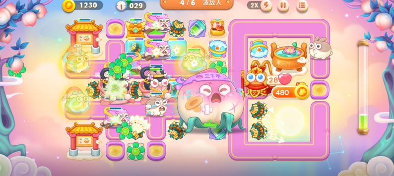 桃子大王出现可以吸引火力,帮助呆萌兔偷袭阿波,但是让呆萌兔郁闷的是,肥美多汁的桃子大王,受到一定伤害会掉落桃心,补充阿波失去的血量。看着阿波的血量蹭蹭蹭的往上涨,我啃阿波的努力付诸东流,我的血压也蹭蹭蹭的飙升!桃子大王大坏蛋!